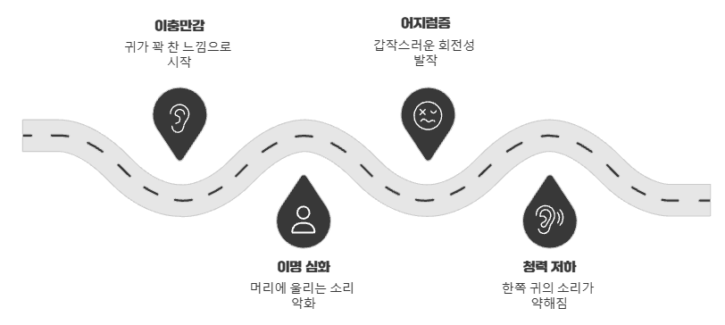 이로 인해 어지럼증, 귀울림, 청력 저하 등 특징적인 증상들이 나타나는 거죠.