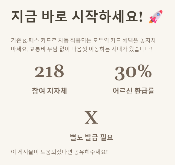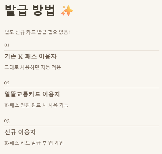- 기존 K-패스 이용자: 아무것도 안 하셔도 됩니다! 평소처럼 대중교통을 이용하세요.