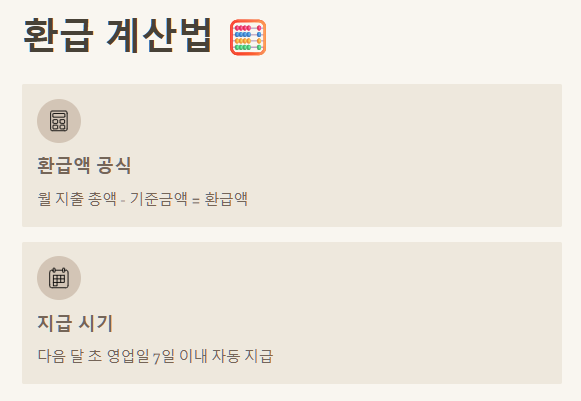 환급액 = 월 지출 총액 - 기준금액