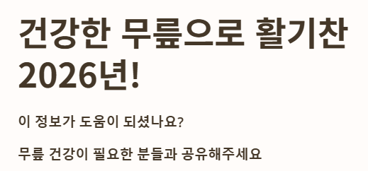 ✅ 생활 습관 개선으로 무릎 건강 지키기: 적정 체중 유지, 꾸준한 근력 운동, 바른 자세가 예방에 중요합니다.