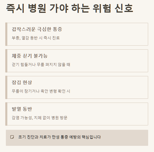 내 무릎 통증, 언제 병원에 가야 할까요? 🚨 (위험 신호)