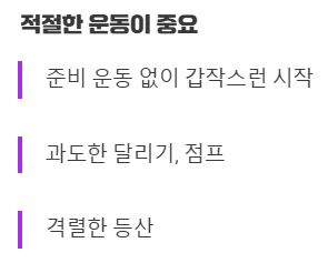 운동 전후 스트레칭과 적절한 강도 조절은 필수예요.