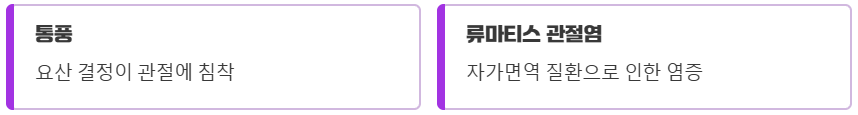 드물지만 통풍이나 류마티스 관절염 같은 전신 질환의 증상으로 무릎 통증이 나타나기도 해요.