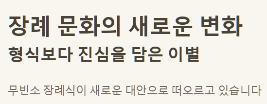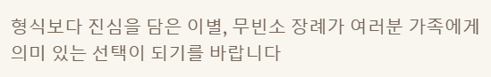 - 무빈소 장례는 빈소와 조문객 접대 없이 고인과 유가족의 마지막 이별에 집중하는 방식입니다.