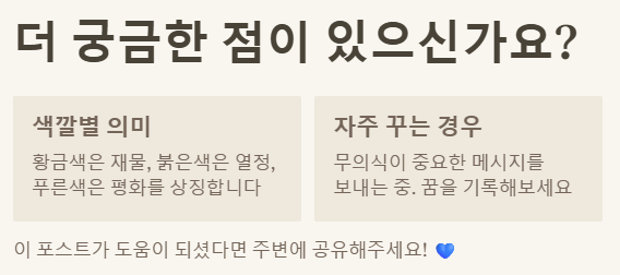 특히 최근에 재물, 건강, 혹은 새로운 시작과 관련된 변화를 겪고 있거나 기대하고 있다면 더욱 그럴 수 있죠.