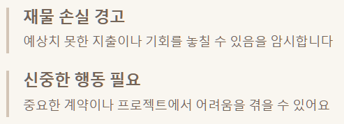 예상치 못한 지출이 생기거나, 중요한 계약이나 프로젝트에서 어려움을 겪을 수도 있습니다.