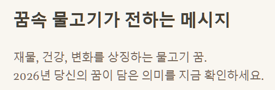 또는, 맑은 물에서 유유히 헤엄치는 물고기를 보며 평화로움을 느꼈다면, 현재 당신의 마음이 안정되어 있고 모든 일이 순조롭게 흘러가고 있음을 나타낼 수 있습니다.