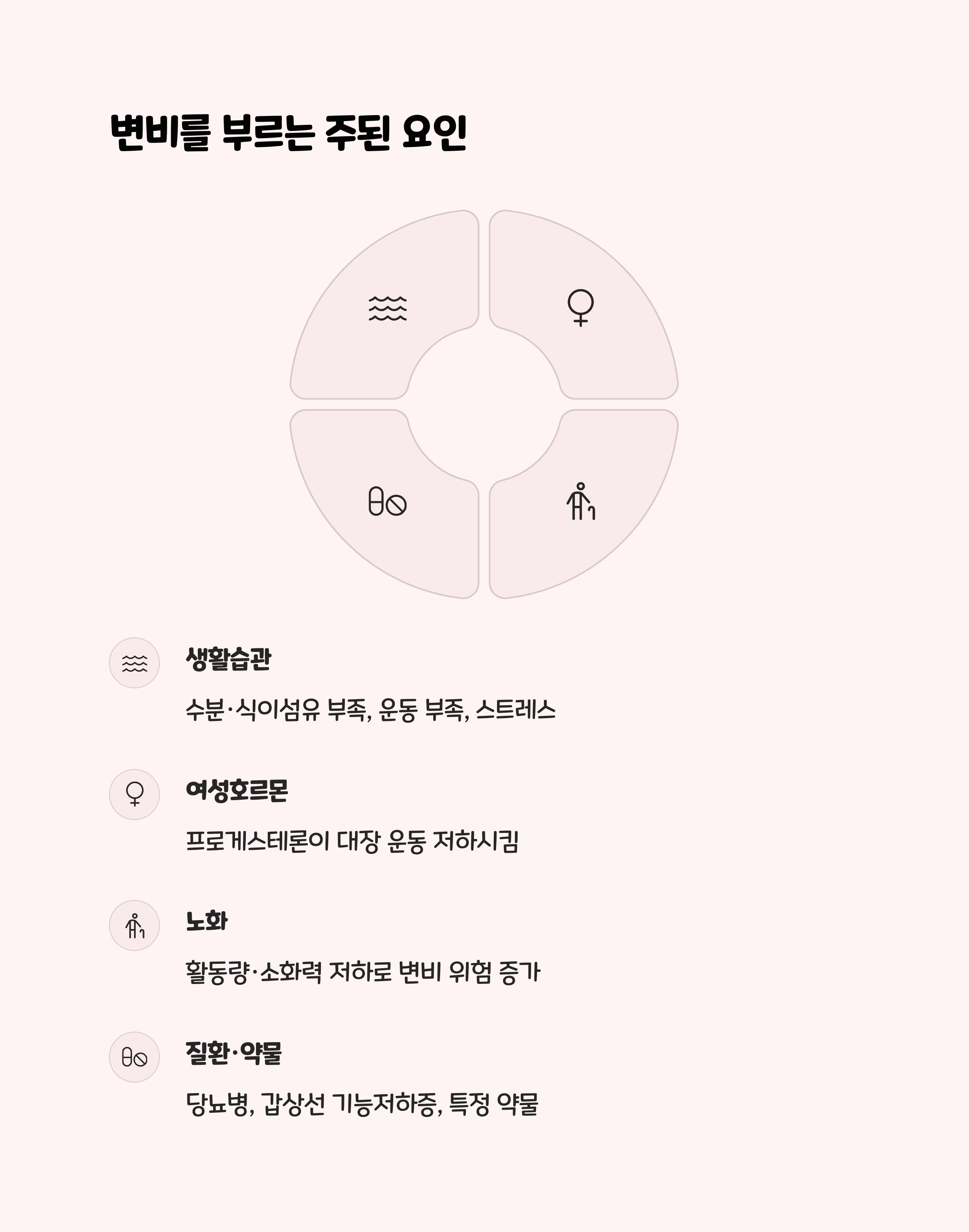 | 생활습관 | 수분·식이섬유 부족, 운동 부족, 스트레스 등 |