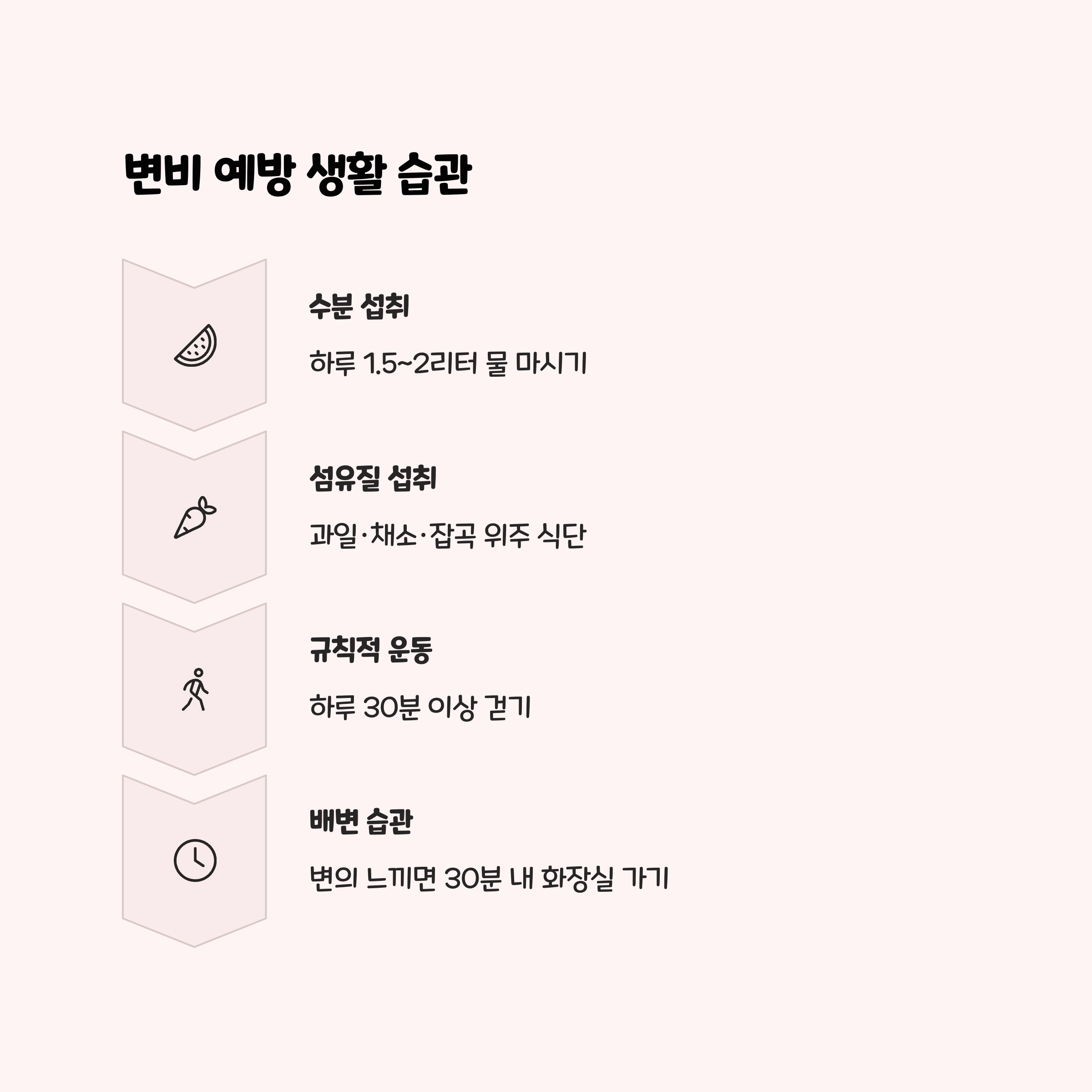 아래 표를 참고해 일상에서 실천 가능한 변비 예방 루틴을 확인해 보세요.