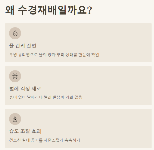수경재배는 이런 물 주기 고민을 한방에 해결해 줘요. 투명한 유리병을 통해 물의 양과 뿌리 상태를 직관적으로 확인할 수 있기 때문이죠. 게다가 실내 습도 조절 효과까지 있으니, 건조한 요즘 같은 날씨에 딱이에요!