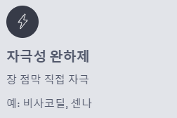 - 자극성 완하제: 장 점막을 직접 자극하여 장 운동을 활발하게 합니다. (예: 비사코딜, 센나). 효과는 빠르지만 장기간 사용은 피해야 합니다.