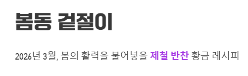 겨울 내내 움츠렸던 몸이 2026년 봄이 되면서 슬슬 나른해지고 입맛도 떨어지기 쉽잖아요.