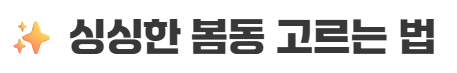 잎이 너무 벌어지지 않고 적당히 모여 있으며, 잎 하나하나가 두껍고 통통한 것이 좋다고 해요. - 크기: 너무 큰 것보다는 중간 크기 정도의 봄동이 잎이 부드럽고 고소한 맛이 강하답니다.