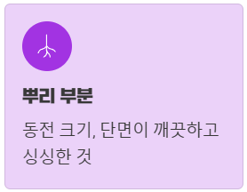 뿌리 단면이 깨끗하고 싱싱한 것을 고르세요.