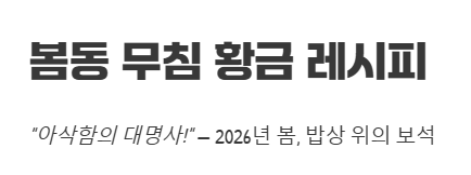 | 봄동 비빔밥 레시피 (1) | 2026.03.10 |