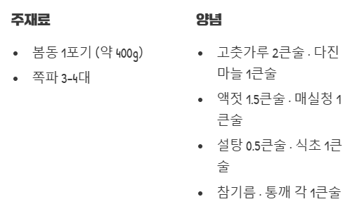 | 양념 | 고춧가루 | 2큰술 |