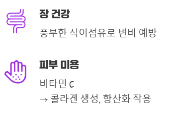 - 면역력 증진: 비타민 A, C가 풍부하여 환절기 면역력 강화에 효과적입니다.