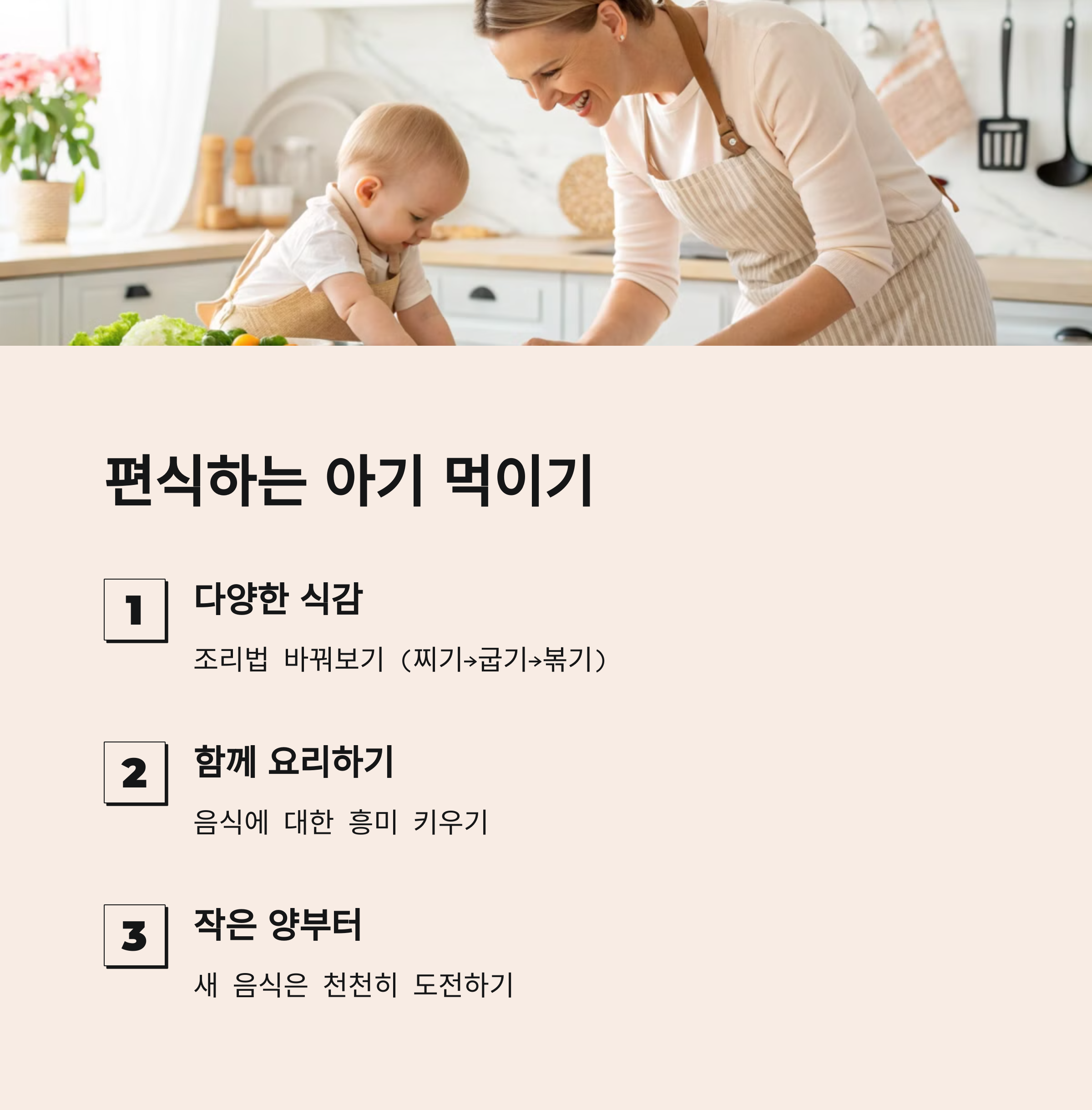 - 아기와 함께 요리하면서 음식에 대한 흥미를 키워주세요.