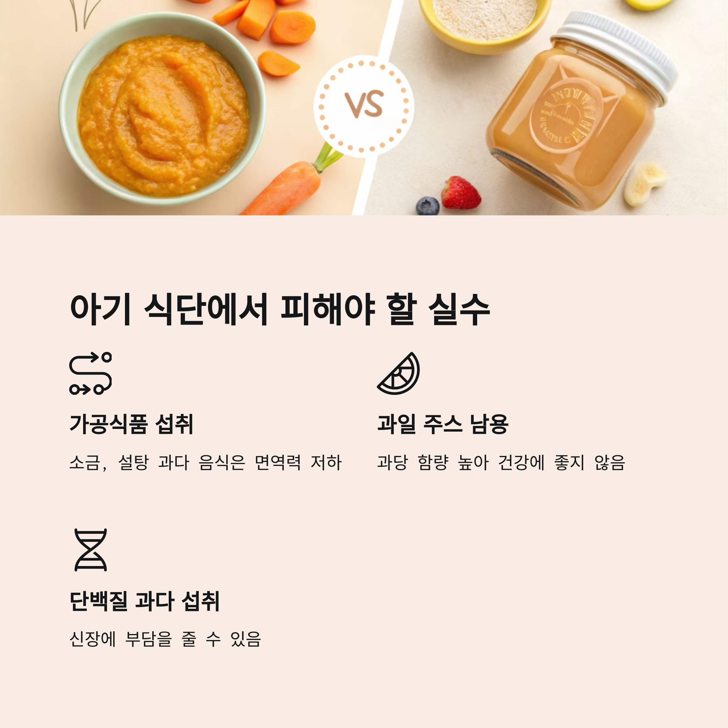 아기의 면역력을 높이기 위해서는 무엇을 먹이는지도 중요하지만, 피해야 할 실수도 알아두는 것이 좋아요.