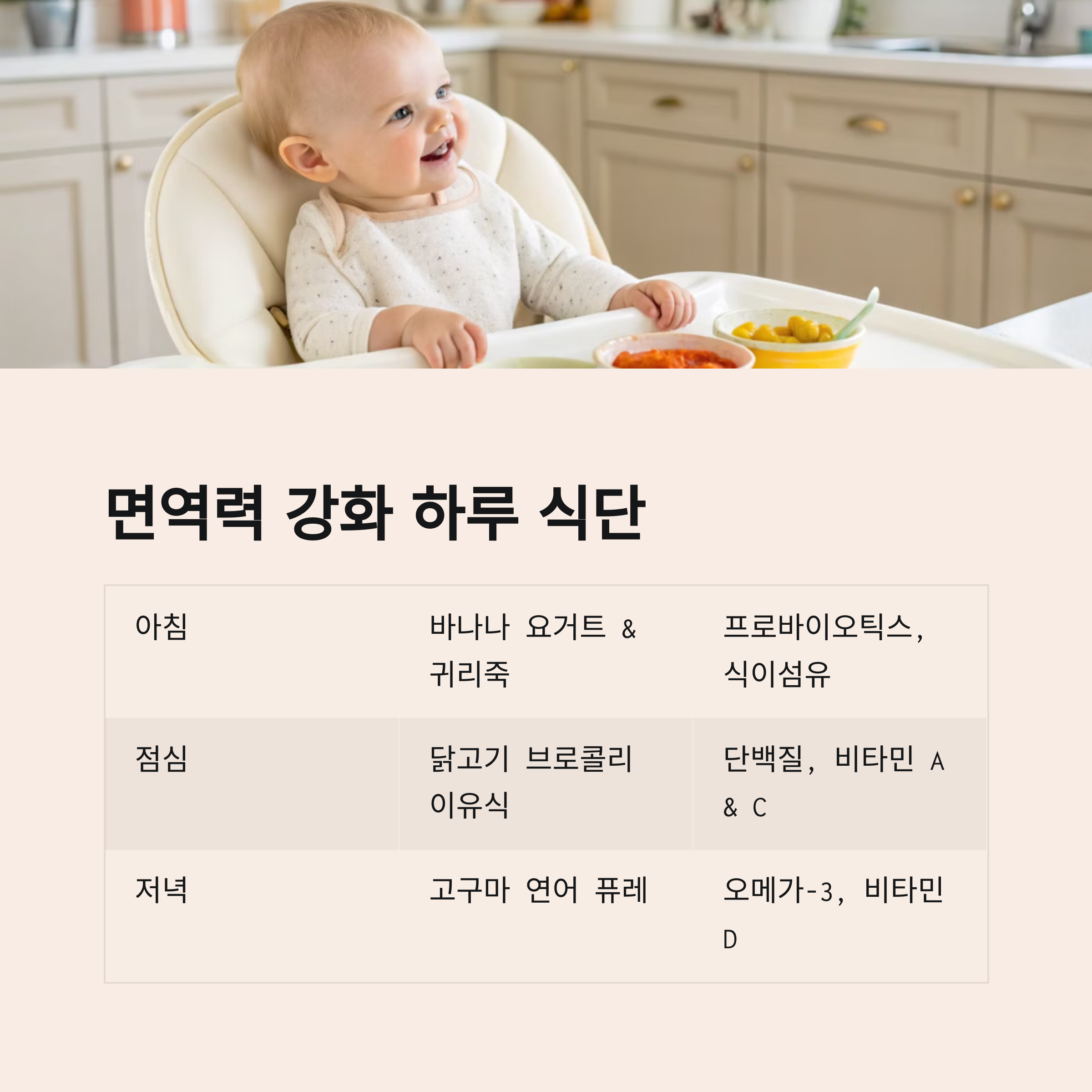 아기의 면역력을 높이는 것은 매일의 작은 습관에서 시작됩니다. 건강한 식단을 유지하는 것만으로도 환절기 질병을 예방하는 데 큰 도움이 될 수 있어요.