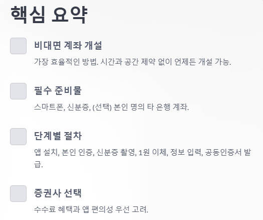 - ✅ 증권사 선택 시 수수료 혜택과 앱 편의성을 우선적으로 고려하는 것이 현명합니다. 여러 증권사를 비교해보고 자신에게 맞는 곳을 찾으세요.