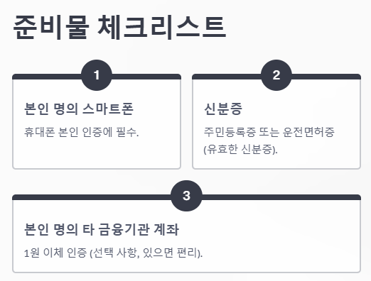- ✅ 필수 준비물은 스마트폰, 신분증, 그리고 선택적으로 본인 명의 타 은행 계좌예요. 미리 준비하면 개설 시간을 단축할 수 있습니다.