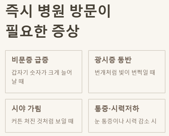 ⚠️ 주의! 이런 증상이 있다면 즉시 안과에 방문하세요.