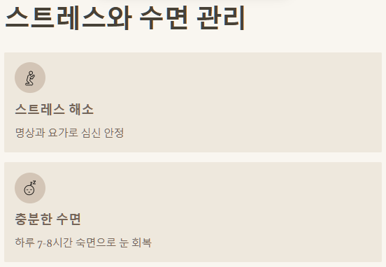 • ✅ 20-20-20 규칙, 따뜻한 찜질 등으로 눈 피로 줄이고 휴식 주기.