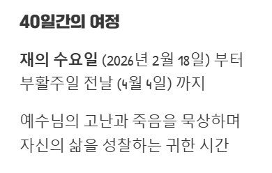- ✅ 사순절은 영적 재정비의 시간: 2026년 사순절은 예수님의 고난을 묵상하며 회개와 갱신을 통해 영적으로 성장하는 특별한 기간입니다.