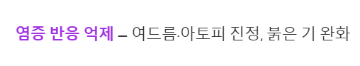 피부에 발생하는 다양한 염증을 진정시키고 붉은 기를 완화하는 데 도움을 줄 수 있답니다.