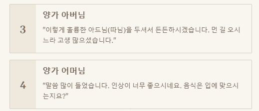1. 상대방 부모님께 드리는 인사