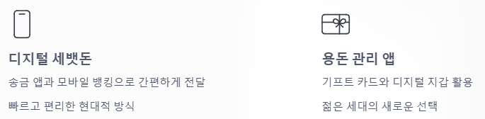물론 전통적인 봉투의 정취는 없지만, 빠르고 편리하다는 장점 때문에 젊은 세대 사이에서 특히 인기를 얻고 있죠. 또한, 용돈 관리 앱이나 기프트 카드 형태로 세뱃돈을 주는 방식도 점차 확산되고 있습니다.