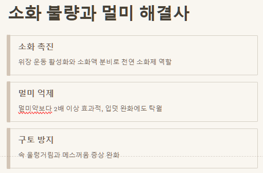 소화 불량과 멀미 해결사 📊