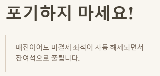 - ✔️ 잔여석 확인 꿀팁: 미결제 좌석 풀림 시간 노리기