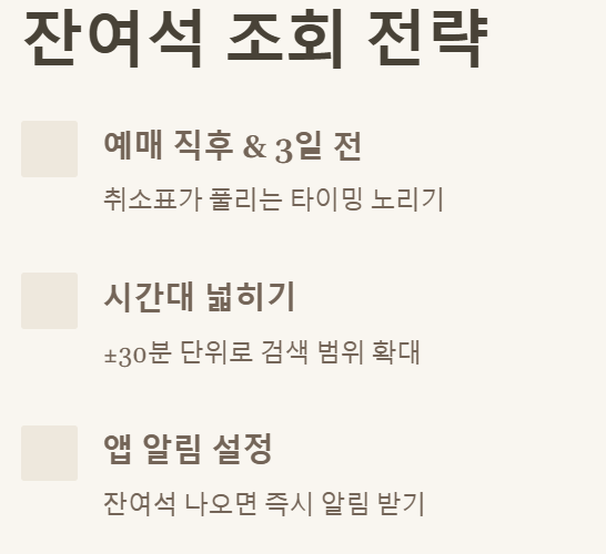 🔍 잔여석 조회 꿀팁 & 포기하지 않는 전략