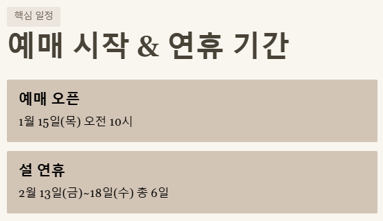 - ✔️ 예매 시작일: 2026년 1월 15일(목) 오전 10시