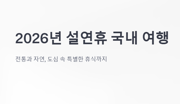 이번 포스팅에서는 여러분의 2026년 설연휴를 더욱 특별하게 만들어 줄 국내 여행지를 추천해 드리고자 합니다.