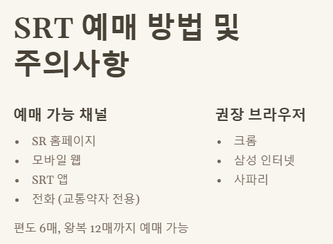 SRT 예매 팁과 주의할 점