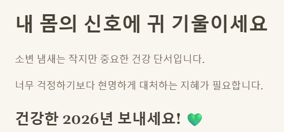소변 냄새는 정말 작은 신호 같지만, 우리 몸의 상태를 엿볼 수 있는 중요한 단서가 된답니다. 오늘 제가 드린 정보들이 여러분의 건강 관리에 조금이나마 도움이 되었으면 좋겠어요. 너무 걱정만 하기보다는, 내 몸의 변화에 관심을 기울이고 현명하게 대처하는 지혜가 필요하다고 생각해요. 건강한 2026년을 보내시길 진심으로 바랍니다!