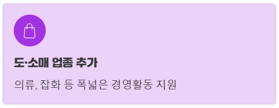 특히 인터넷 사용에 익숙하지 않은 고령층 소상공인분들도 편리하게 전기요금을 납부할 수 있도록 배려한 점이 돋보입니다. - 도·소매 업종 사용처 추가: 의류, 잡화 등 도·소매 업종의 소상공인분들을 위한 사용처도 추가되어, 더욱 폭넓은 경영활동 지원이 가능해졌습니다.