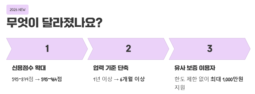 - 신용점수 요건 완화: 기존 NICE 신용평점 595점~879점에서 595점~964점으로 대폭 확대되었어요.