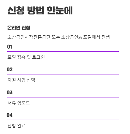 - 신청 장소: 주로 '소상공인시장진흥공단'이나 '소상공인24' 포털에서 온라인으로 진행됩니다.