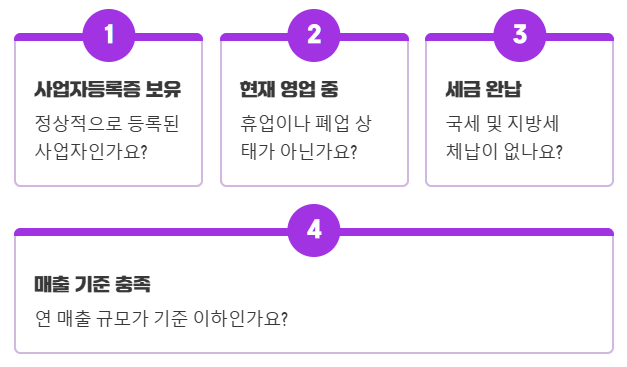 휴업이나 폐업 상태라면 지원이 어려울 수 있으니 꼭 확인하세요.