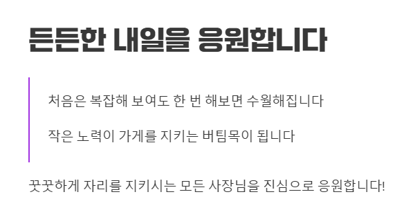이 작은 노력이 사장님의 소중한 가게를 지탱하는 든든한 버팀목이 될 거예요.