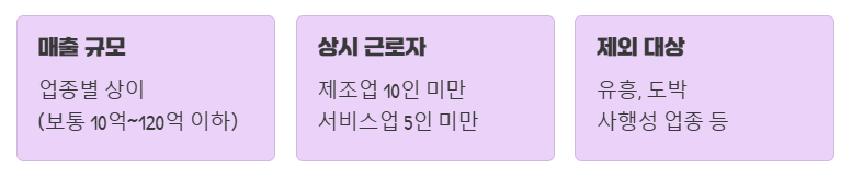 | 상시 근로자 | 제조업 10인 미만, 서비스업 5인 미만 |