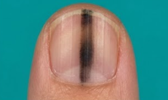 검은/갈색 줄무늬 외상, 멜라닌 침착, 악성 흑색종(피부암) 가능성