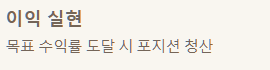 - 예상 이익 실현 (Profit taking): 주가 하락을 예상해서 공매도 포지션을 잡았는데, 실제로 주가가 충분히 하락하여 목표 수익률에 도달했을 때 이익을 확정하기 위해 주식을 다시 사들입니다. 이 경우 공매도 투자자는 성공적으로 수익을 실현하는 것이죠.