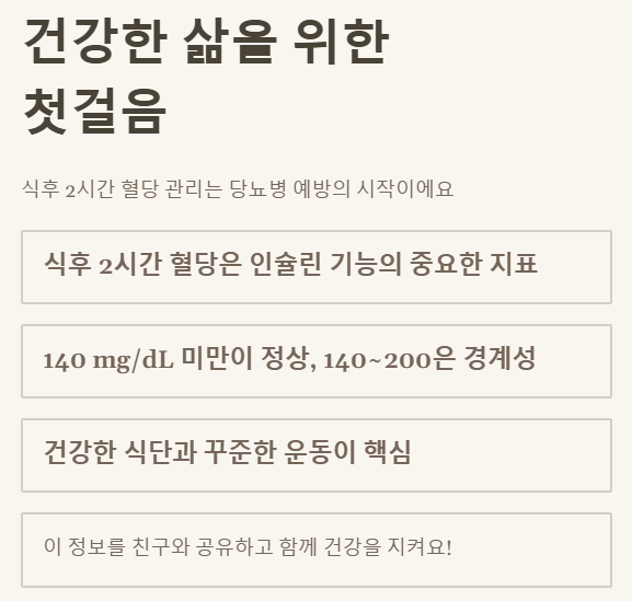 식후 2시간 혈당 관리는 당뇨병 예방과 건강한 삶을 위한 매우 중요한 첫걸음이라고 생각해요.