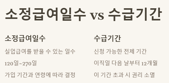 여기서 또 하나 헷갈릴 수 있는 개념이 '소정급여일수'와 '수급기간'이에요.