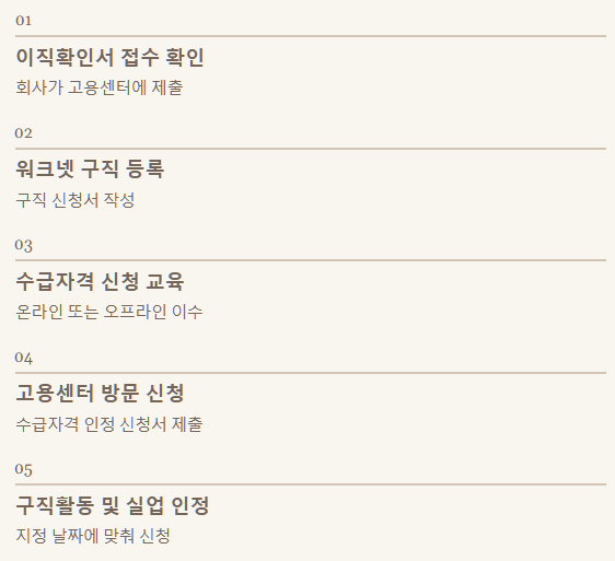 - 수급자격 신청 교육 이수: 온라인(고용보험 홈페이지) 또는 오프라인(고용센터 방문)으로 실업급여 신청을 위한 교육을 이수합니다.